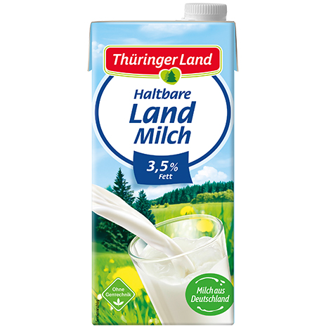 Unsere feine Vollmundige: Thüringer Land haltbare Vollmilch steht für hervorragenden Geschmack und beste Qualität.