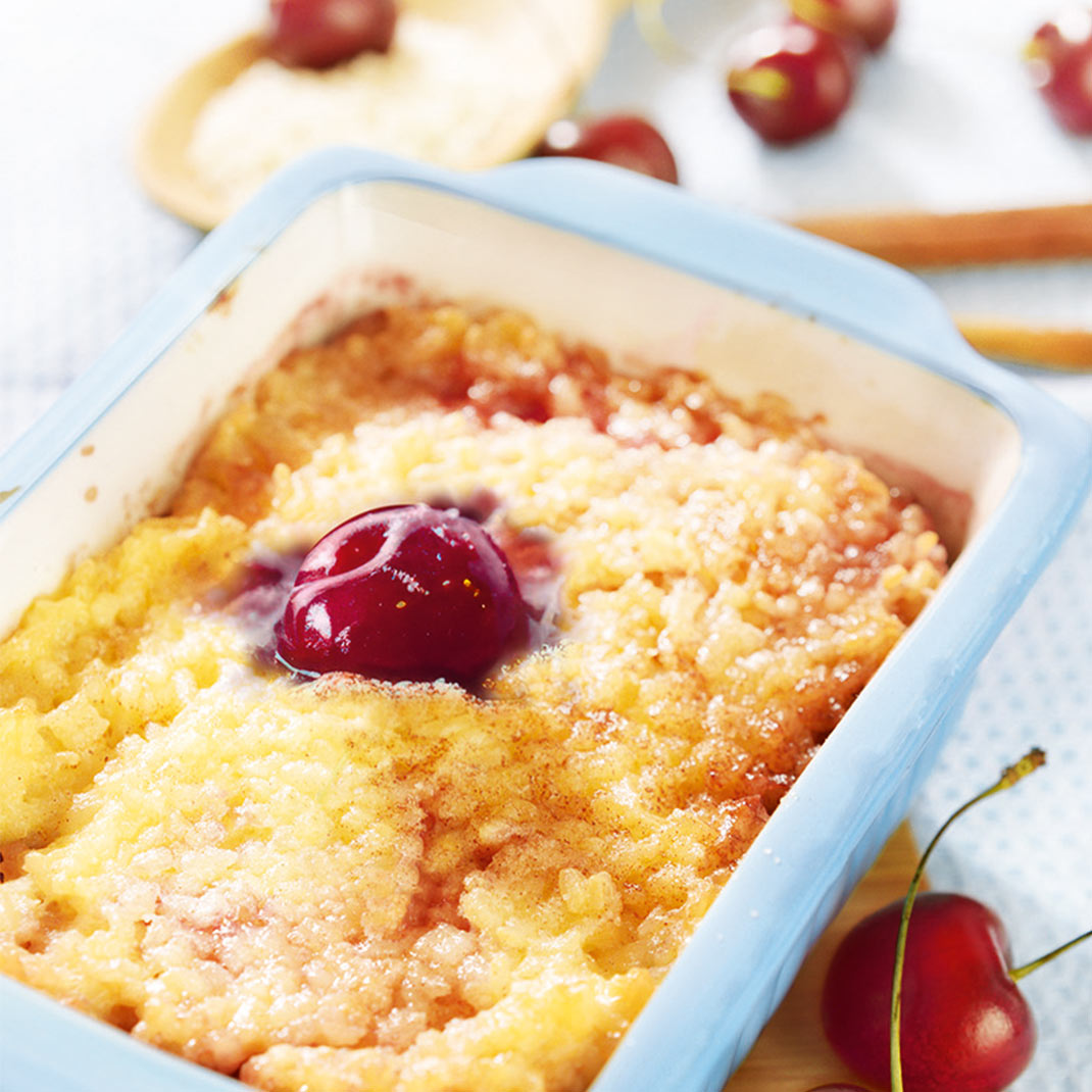 Reisauflauf mit Kirschen